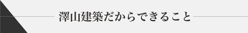 澤山建築は小さい建築屋ですが、それには代表の強い思い入れがあります。それは、お客様と直に接し、一緒に家を作り上げていくことです。予算から始まり、家を建てながらもその都度お客様と相談・提案をし、一つの家を作り上げていく。それは、 「お客様が作った家を建てた後の10年後、20年後も大切にしてもらいたい。」 そんな思いで澤山建築はお客様を大切にしております。 大きな会社では出来ない、小回りの利くお客様重視の建築屋を目指しております。