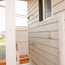 お客様が海が好きで、カリフォルニア、サーファーズハウスがご希望という事で、白を基調に外壁を鎧張りで軒を深くし、リビングとウッドデッキを一体化しました。 外には海から帰ってすぐにシャワーを浴びれるようにシャワースペースを設けました。 洗面台や家具などお客様のご希望により、既製品ではなく一つ一つ手作りで作成させていただきました。